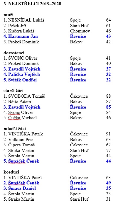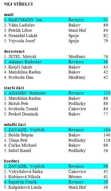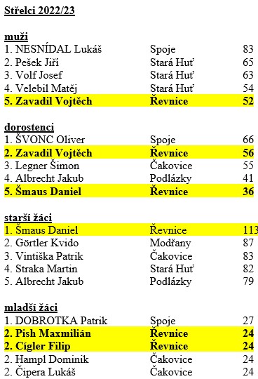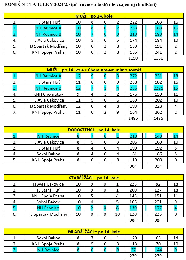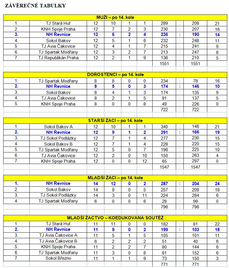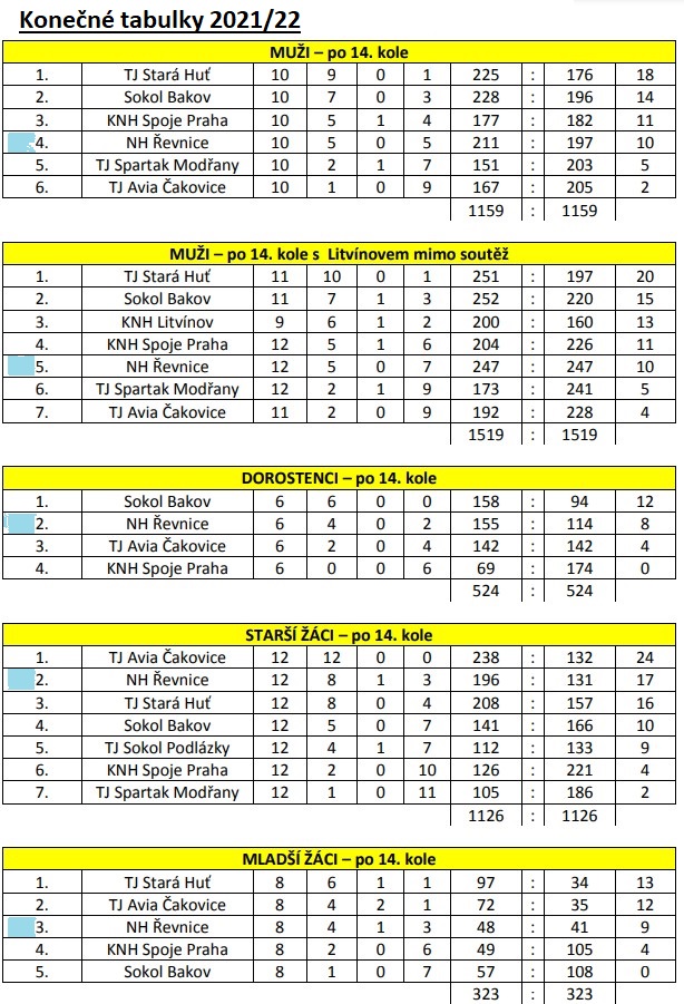 Zde jsou rozpisy s výsledky a průběžné či konečné tabulky