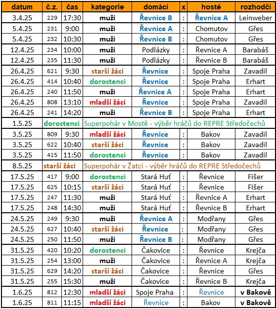 Rozpisy, tabulky, výsledky